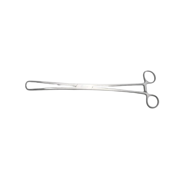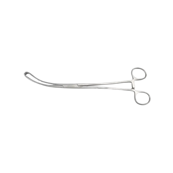 Designed for surgical handling in gynecologic and obstetric contexts, this vulsellum features curved tips and a flat-grip handle to facilitate controlled grasping and traction. The 9.5-inch variant is constructed from stainless steel with a matte finish and is autoclavable for standard sterilization procedures, aligning with intraoperative use requirements.